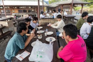 一晩寝かせたカレーをおいしく食べて、片付け。最後に集合写真を撮って解散しました。