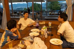 温泉の後は宴会です。みんなでコテージに集まり談笑しながらお酒を飲んでいました。
