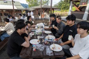 一晩寝かせたカレーをおいしく食べて、片付け。最後に集合写真を撮って解散しました。