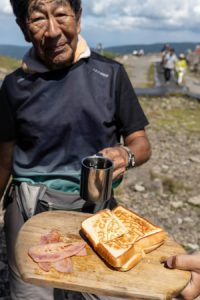 山頂で昼食!同好会の料理長がホットサンドを作ってくれました。