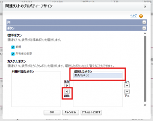 ⑦ 「カスタムボタン:」の選択したボタンにある「要員マッチング」を選択し「削除(◀)」ボタンをクリック